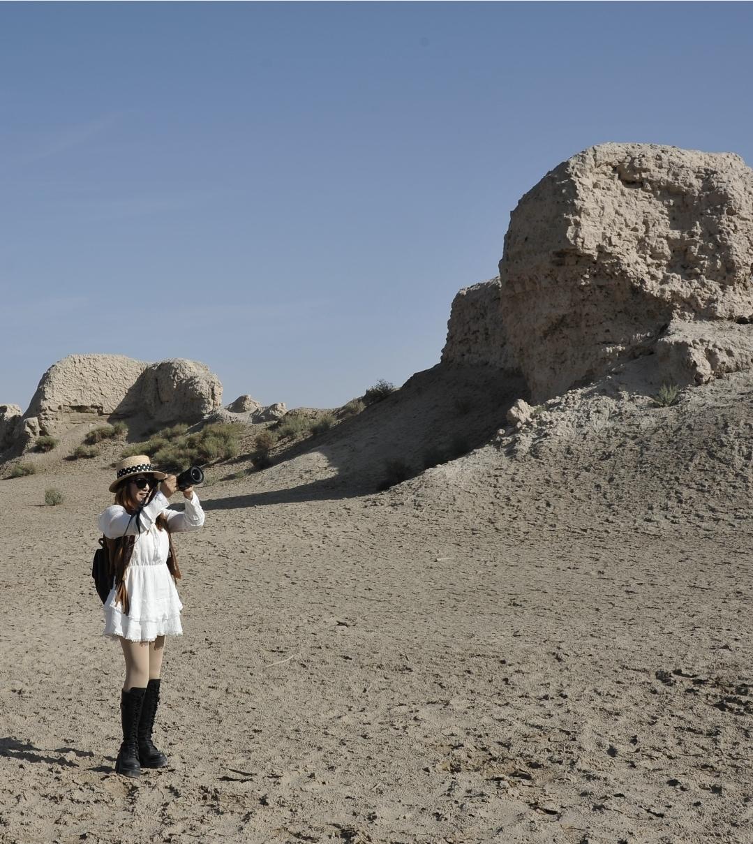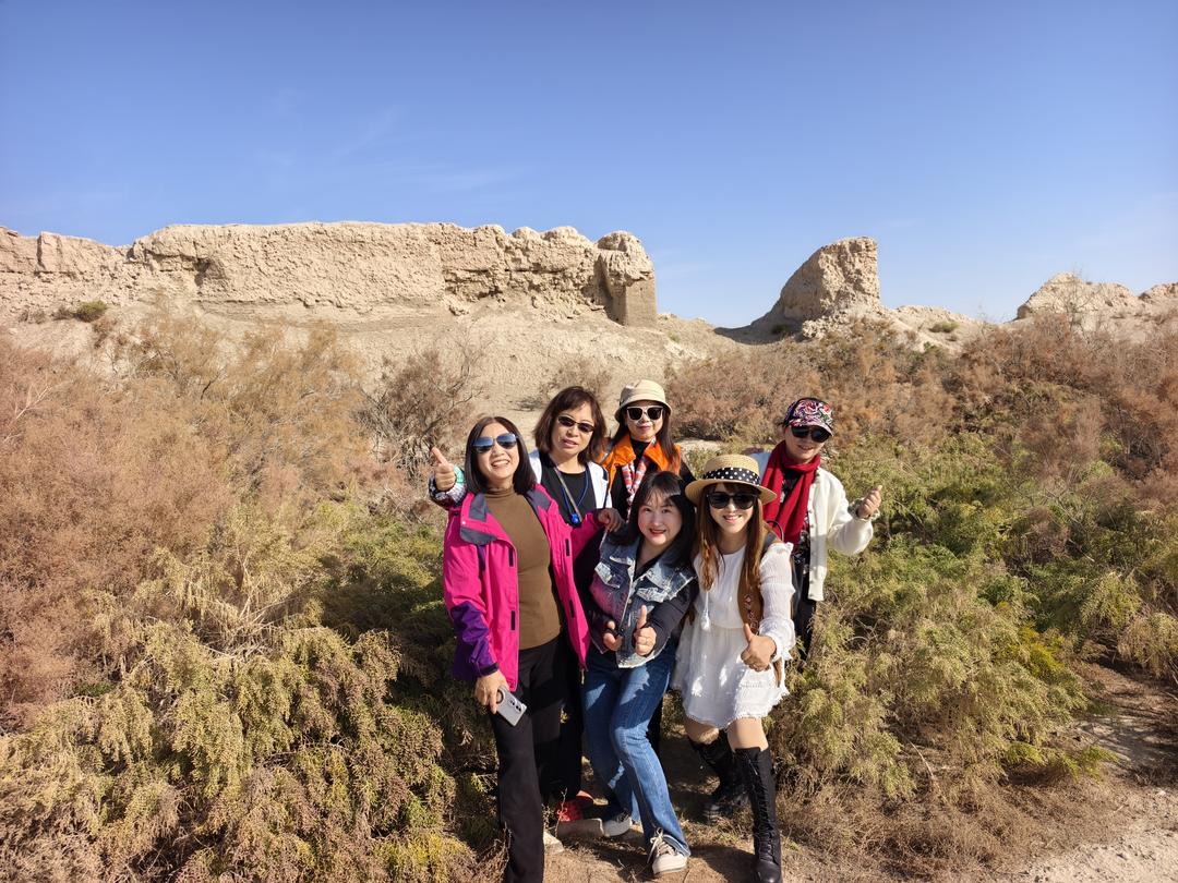 海外华文媒体代表们在古城遗址中漫步,实地考察这座见证了丝绸之路辉煌历史的军事与行政枢纽。