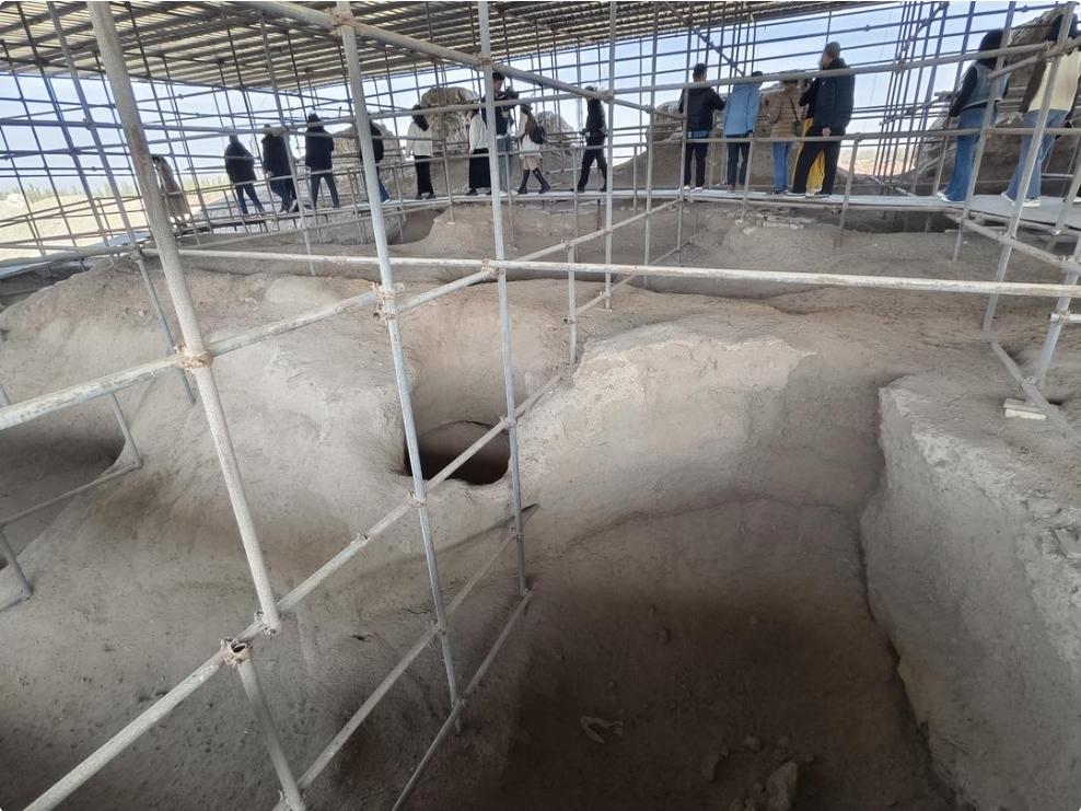 据讲解员介绍北京大学考古文博学院教授陈凌带领的“安西大都护府考古”项目团队,自2013年起就在此开展考古调查工作。通过局部钻探,发现通古斯巴什古城地层堆积超过5米,表明古城文化堆积深厚,延续使用时间很长。