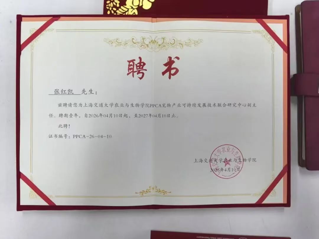 【本刊上海讯 特约记者 辛珝】2026年4月10日,值此上海交通大学建校130周年华诞之际,一场以"百卅交大·宠业智创"为主题的国际产学研盛会隆重举行。上海交通大学农业与生物学院与仙犬智能(PPCA)正式签约,共建“宠物产业可持续发展技术联合研究中心”。国际细胞医学权威、联合国《世界生态》首席专家张红凯院士获聘领衔,以全球生态与健康视野,为万亿级宠物健康产业注入核心动能,开启宠物干细胞领域行业标准制定与产学研融合的新纪元。